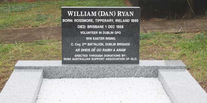 A commemoration will be held at the grave of Irish rebel William Ryan in Nudgee Cemetery, on Easter Monday.