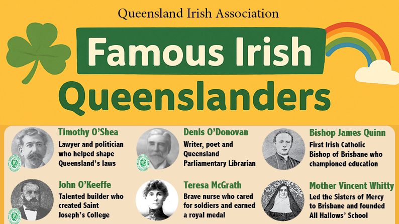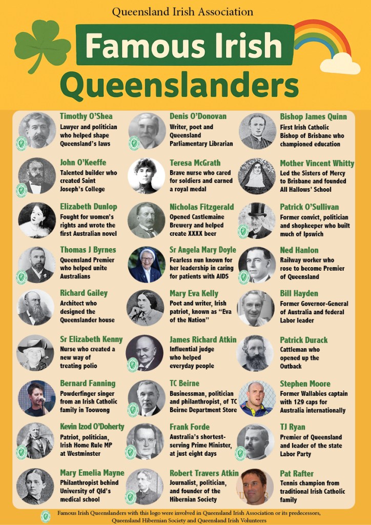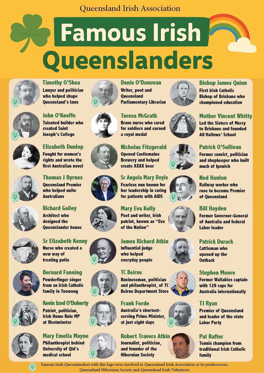 Queensland Irish Association has designed a series of posters to illustrate noted Irish Queenslanders as part of QIA’s display at Brisbane 100 celebrations.