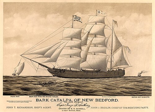 The six men slipped away from their outdoor work gang. Their disappearance wasn’t noticed immediately. By the time authorities realised what had happened, the escapees already had a crucial head start heading south toward the waiting rescue. Racing south on horseback, they reached the coast where a small whaleboat waited. Battling heavy seas and exhaustion, they rowed desperately towards the Catalpa as authorities launched a frantic pursuit aboard the steamship Georgette.