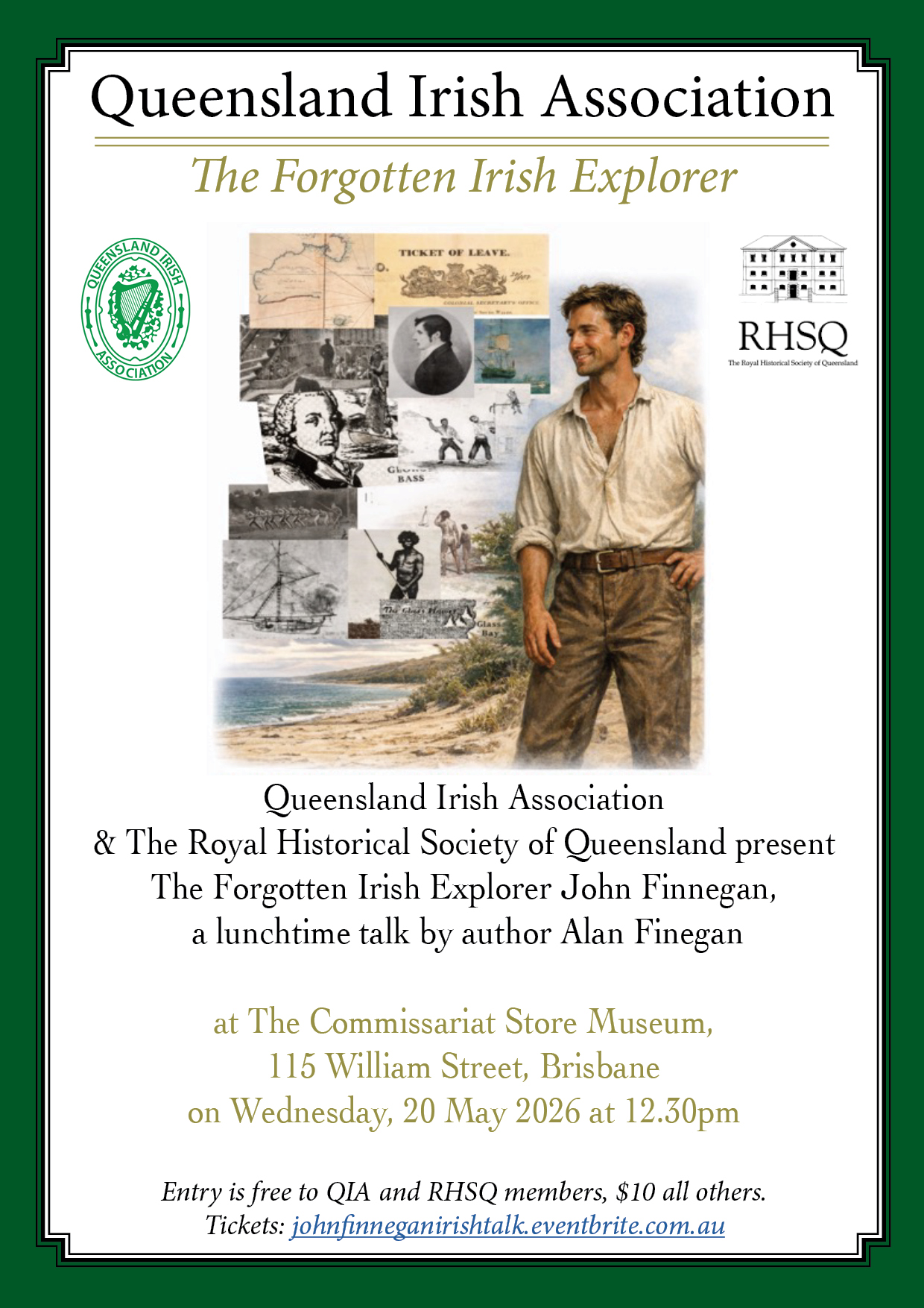 Step back into Brisbane’s earliest days at a special lunchtime talk on the forgotten Irish explorer John Finnegan, co-hosted by the Queensland Irish Association and the Royal Historical Society of Queensland. The talk will be given by author Al Finegan from Bribie Island, author of John Finnegan – The Forgotten Explorer. Held on Wednesday 20 May 2026 from 12:30pm to 1:30pm at the historic Commissariat Store Museum, this fascinating session uncovers the remarkable story of the convict castaway who helped reveal the Brisbane River to the colonial world. Free for members and just $10 for guests, it’s a rare chance to hear Finnegan’s story brought back to life in the very heart of Brisbane’s convict past. Tickets at Eventbrite.