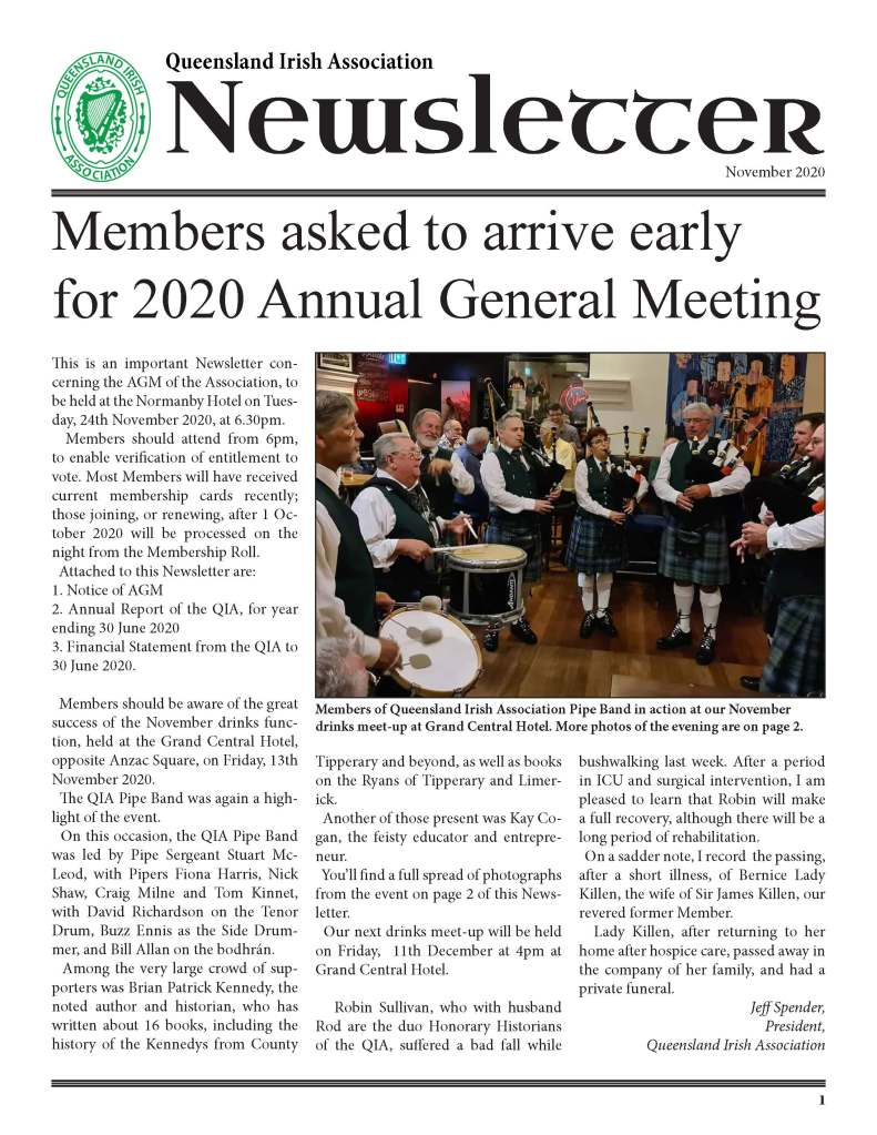 Queensland Irish Association Newsletter. Responsible for layout, editing, design, photography, and overseeing the delivery of the newsletter to members. Also all online social media and website promotion of both the newsletter and the Association itself.