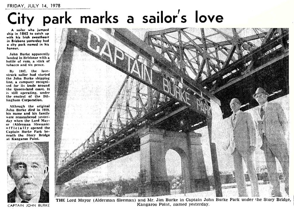 Burke’s contributions to Queensland’s maritime industry are commemorated by Captain Burke Park in Kangaroo Point, Brisbane, named in his honour. He is buried in Toowong Cemetery.